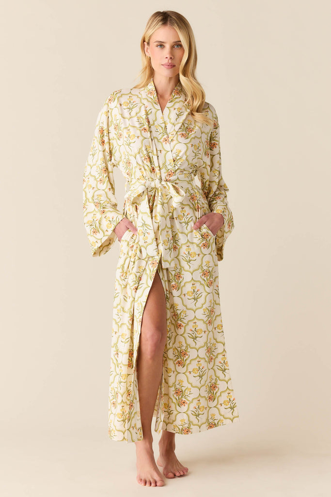 Kaia Cloud Jersey Kimono Robe in Botanical